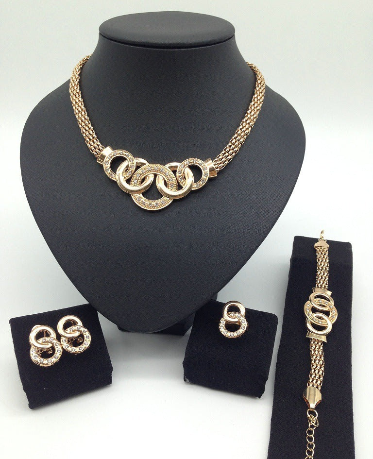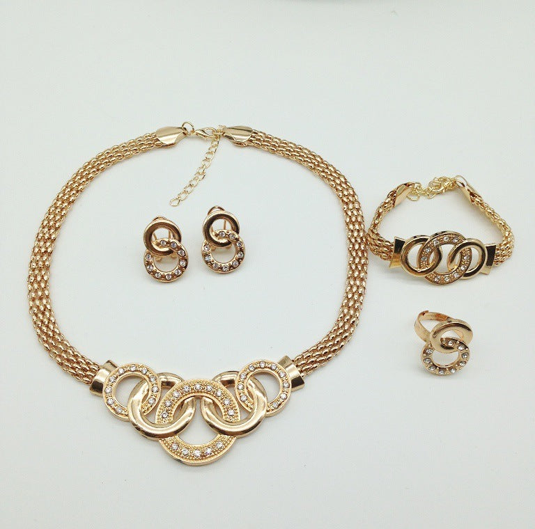 Diamond-encrusted Section Chain Jewelry Set Four-piece Set
