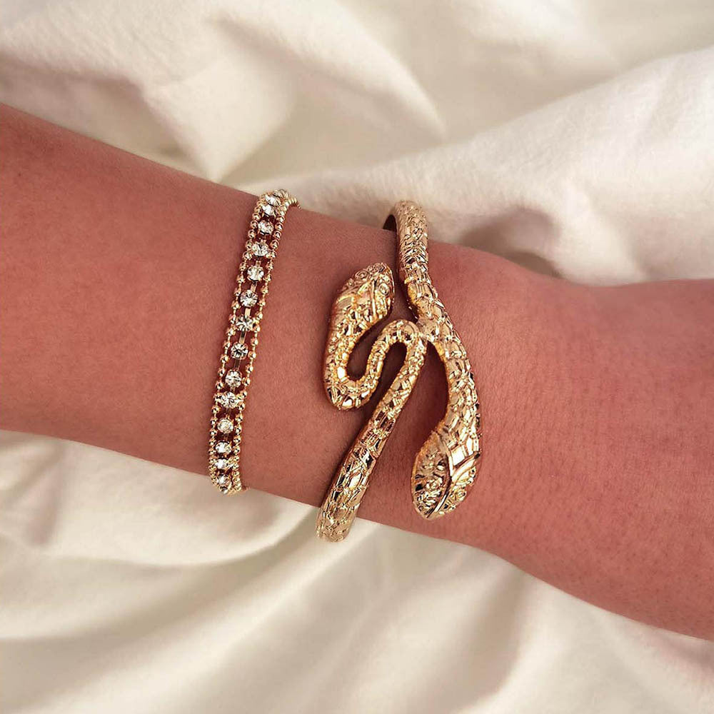 Snake-shaped Bracelet, Diamond-set Chain Bracelet Set Of 2